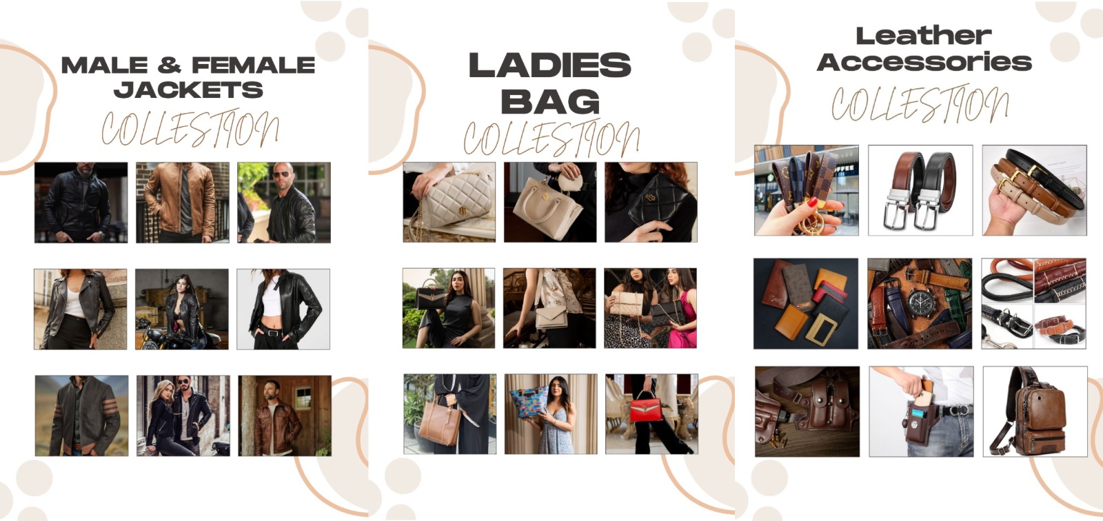 Our collection features classic and contemporary leather shoes for both men and women, ensuring comfort and sophistication in every step. Our signature leather jackets, available in a variety of styles such as biker, bomber, and tailored fits, are crafted to provide both warmth and timeless fashion. MSN Leathers also offers a diverse selection of accessories, including durable wallets, sleek cardholders, sturdy belts, and chic keychains, each made from the finest materials sourced locally in Punjab.