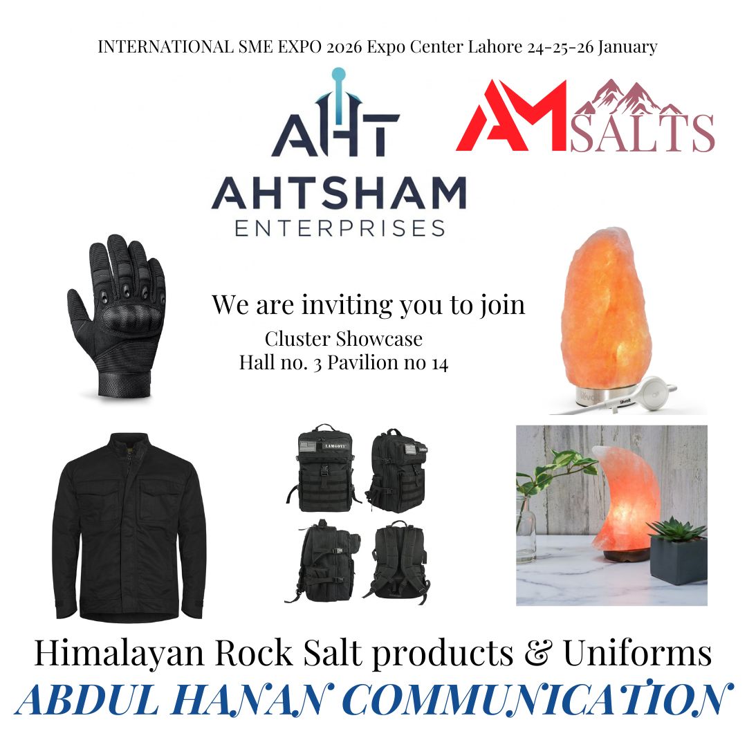 AHTSHAM ENTERPRISES is a Pakistan-based diversified manufacturing and export company specializing in premium mineral salt products and defense-grade textile solutions. The company operates with a strong international trade framework, delivering high-quality products to industrial, institutional, and government clients across global markets. With a strategic focus on compliance, quality assurance, and long-term partnerships, AHTSHAM ENTERPRISES is positioned as a reliable supplier for large-scale international contracts and cross-border trade collaborations.