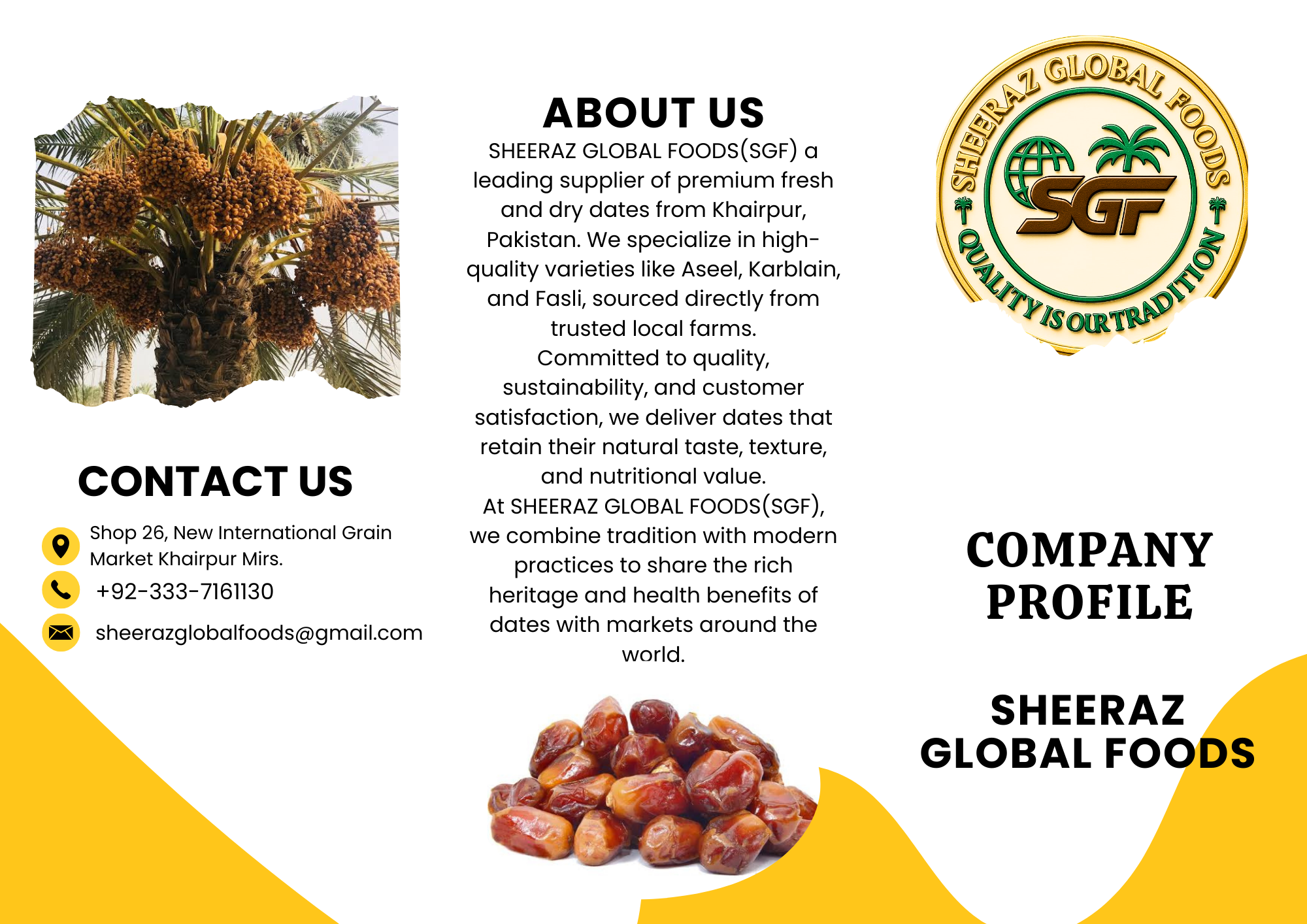 Sheeraz Global Foods is a Pakistan-based agribusiness specializing in premium quality dates and value-added products. Based in Khairpur, Sindh, the heart of Pakistan’s date industry, we offer Fresh Dates, Dry Dates, and Date Blocks (Paste) to both local and international markets. Our operations follow strict Halal, HACCP, and ISO quality standards to ensure purity and excellence.